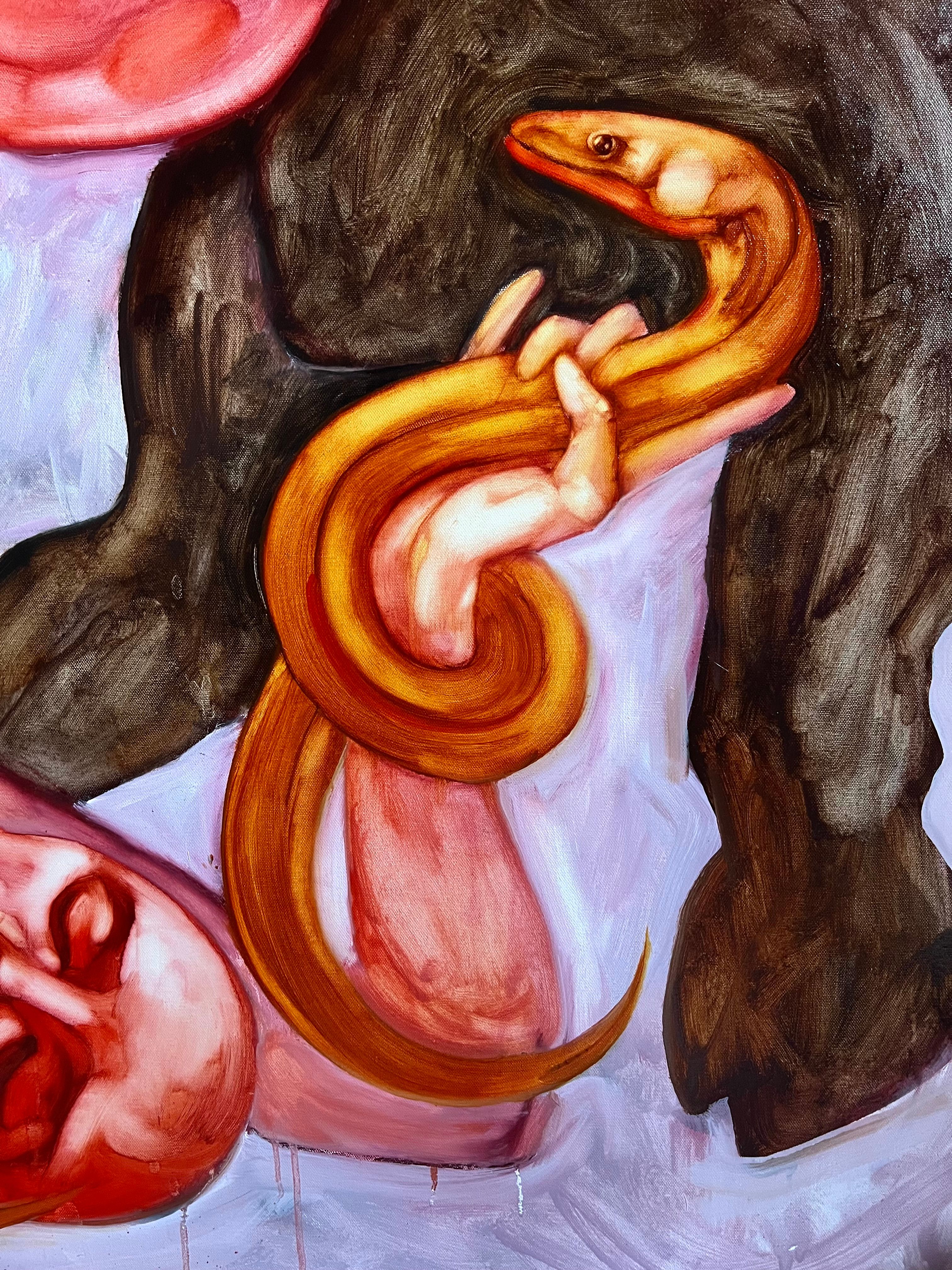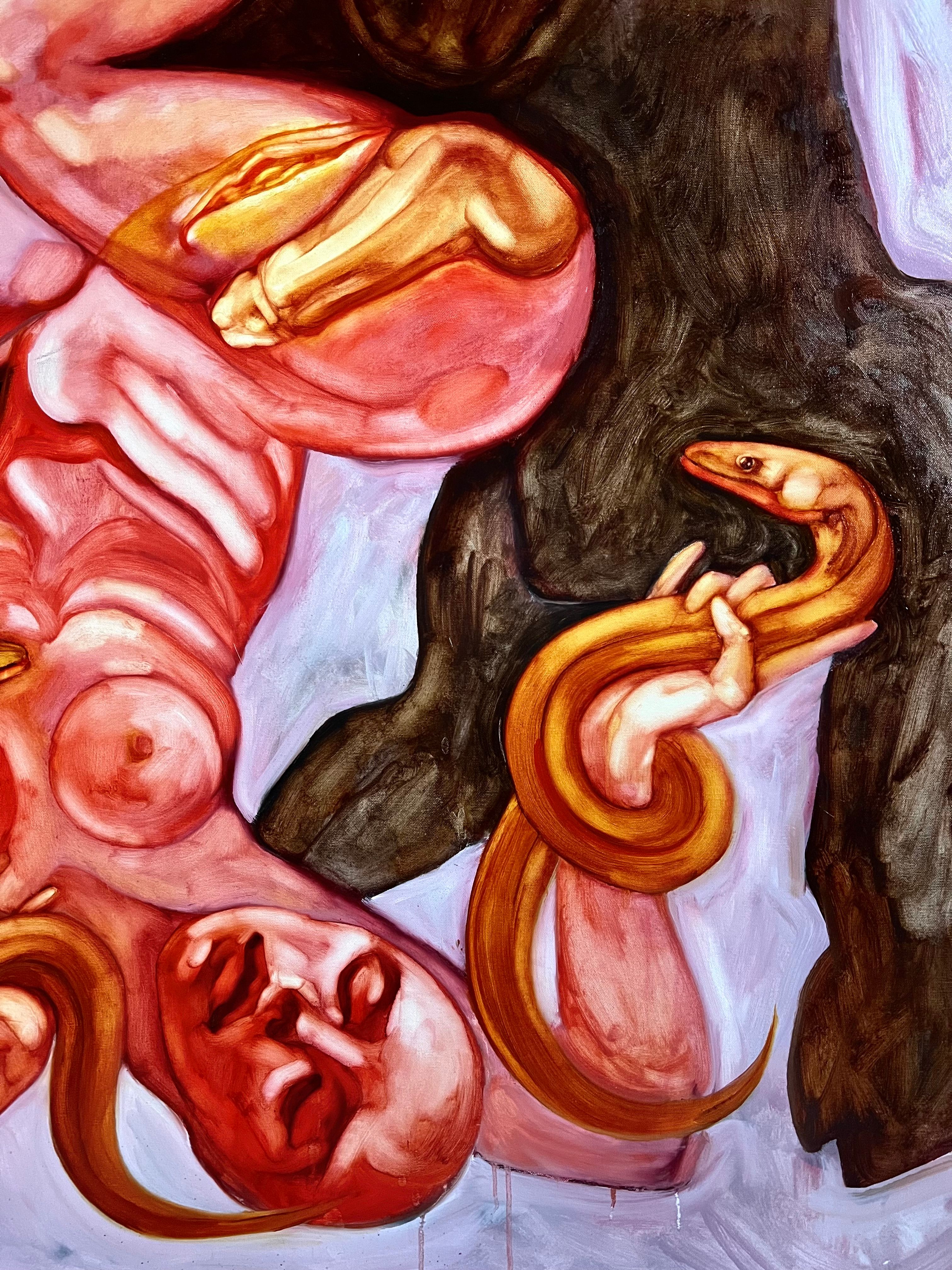 The previous Pasiphaë was painted for the collection "The Method of Mondino and Eleven Beauties in the Landscapes of Etruria" https://www.gertot.com/prjcts/the-mondino-method-and-eleven-beauties-in-the-landscapes-of-etruria and examined violence and mercy, the body as an object of anatomical and judicial scrutiny.